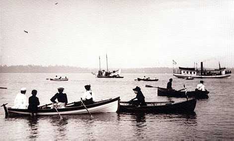 Many families have been summer residents of the Belvedere Club for generations. Typical is the Ware family. Mr. E. C. Ware and family came from Chicago on the CHAMPLAIN, disembarkeing on what was then called the outer pier, or north pier, in 1883. Mr. Ware had three sons, Ralph, Walter, and Robert. At the present time, 1969, the fourth generation resorts at the Belvedere Club.