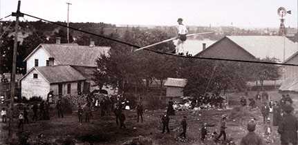 Traveling stuntsmen would put on many shows during a July 4th celebration, getting meager pay by means of a collection after each performance.