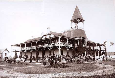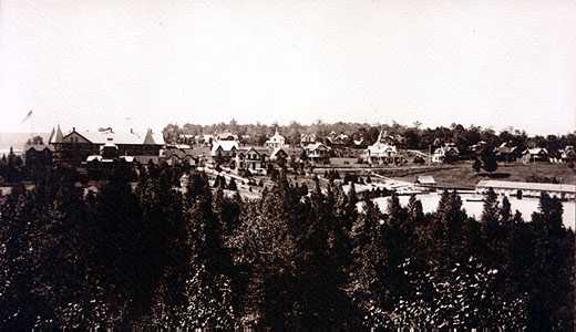 The Charlevoix summer resort as seen from the cupola of the Chicago Club clubhouse in 1893. To the left is Parmelee's Breezy Point Cottage, a landmark for many years. Just beyond it, the new Belvedere House.