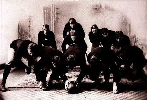 Pictured above is the Charlevoix team of 1901 demonstrating the formation called THE FLYING WEDGE.