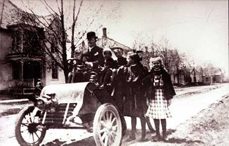 In the above picture Dr. Armstrong, at the wheel of his CADILLAC, is about to take his four children for a ride. Beside the doctor is Phila, the youngest; Bruce, who later became a doctor; Helen, the oldest; and Dorothy.