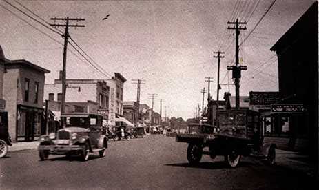 The above picture, looking north, was taken from a spot about 100 feet from the intersection of Mason Street and Bridge Street. All the cars in sight were Fords.